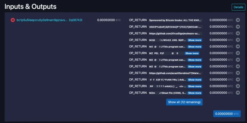 الآن، في وقت إصدار النسخة المرشحة Core v30.0rc1، نجح شخص ما في عرض كيفية استخدام الأمر OP_RETURN في معاملات تحويل BTC لإدخال بيانات ضارة في كتلة البيتكوين، مما قدم تحذيرًا آخر للمجتمع.