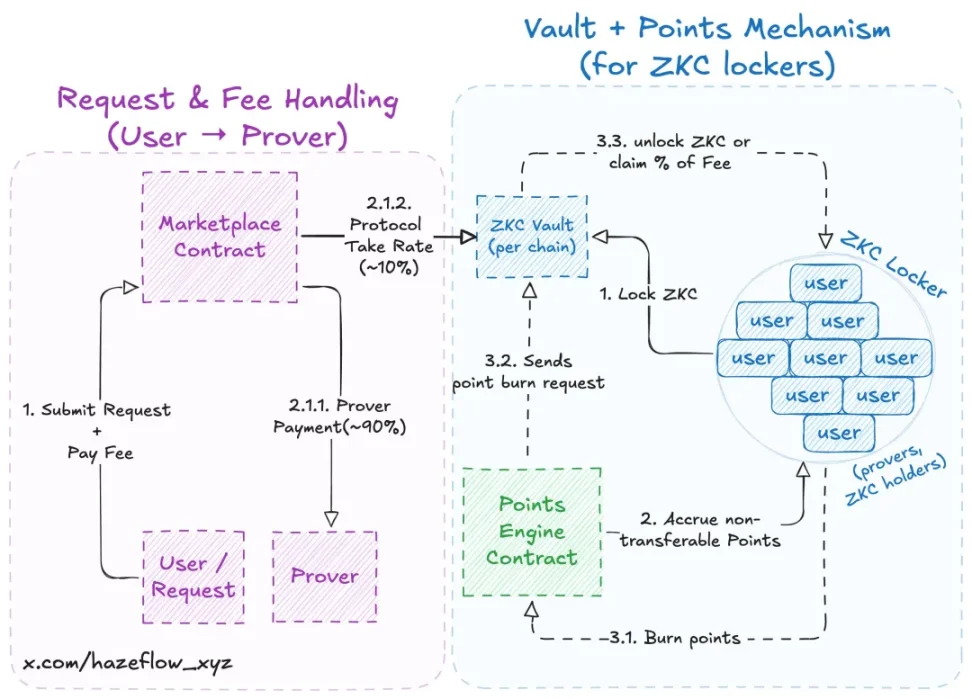 خلف الساحة المزدهرة يوجد خزنة، حيث يمكن للمستثمرين وموظفي التوصيل إيداع الرموز المميزة للسوق (ZKC). طريقة التشغيل هي كما يلي:
