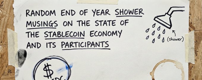 مع اقتراب نهاية هذا العام، كنت أفكر في المرحلة التي نمر بها، والدروس المستفادة من 2025، واتجاهات المستقبل. إليكم بعض ملاحظاتي حول وضع اقتصاد العملات المستقرة مع اقتراب 2026.