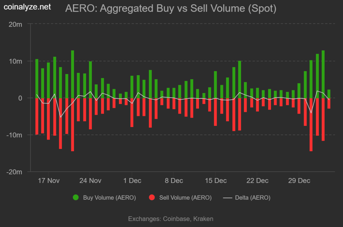 في السوق الفوري، سجلت AERO حجم شراء بلغ 27.1 مليون دولار، متجاوزة بشكل كبير حجم البيع البالغ 24.2 مليون دولار.
