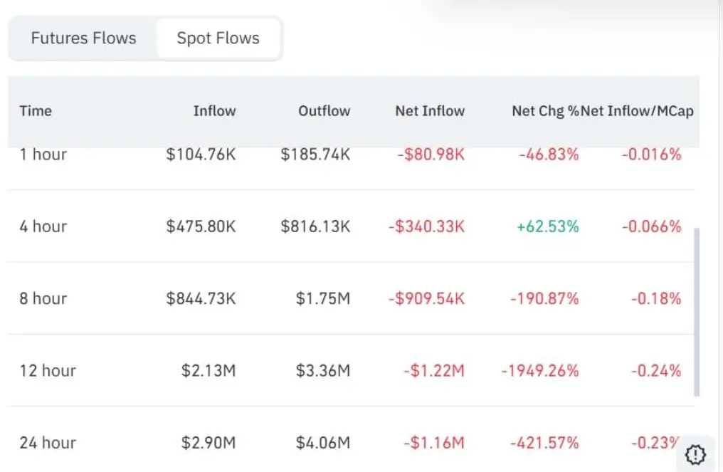 المصدر: Coinglass انخفض صافي التدفقات الفورية بنسبة 421% ليصل إلى -1.16 مليون دولار، مما يعكس مزيدًا من التمسك بالاحتفاظ. في ظل زيادة الطلب على السوق الفوري، تقلص المعروض المتداول — وهو عامل غالبًا ما يمهد الطريق لارتفاعات سريعة وقوية في السعر.