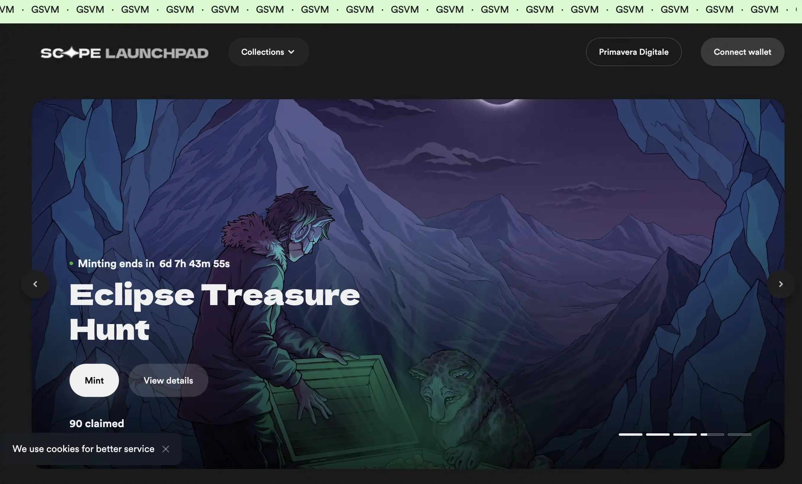 Scope هو منصة إطلاق NFT و سوق ثانوي للتداول لـ Eclipse. لديها خلفية رسمية قوية، مثل NFT ASC الرسمي الذي يتم إصداره على هذه المنصة، ونموذج التفاعل هو تداول NFT و Mint NFT ولكن المشاريع الجديدة ليست كثيرة في الوقت الحالي.