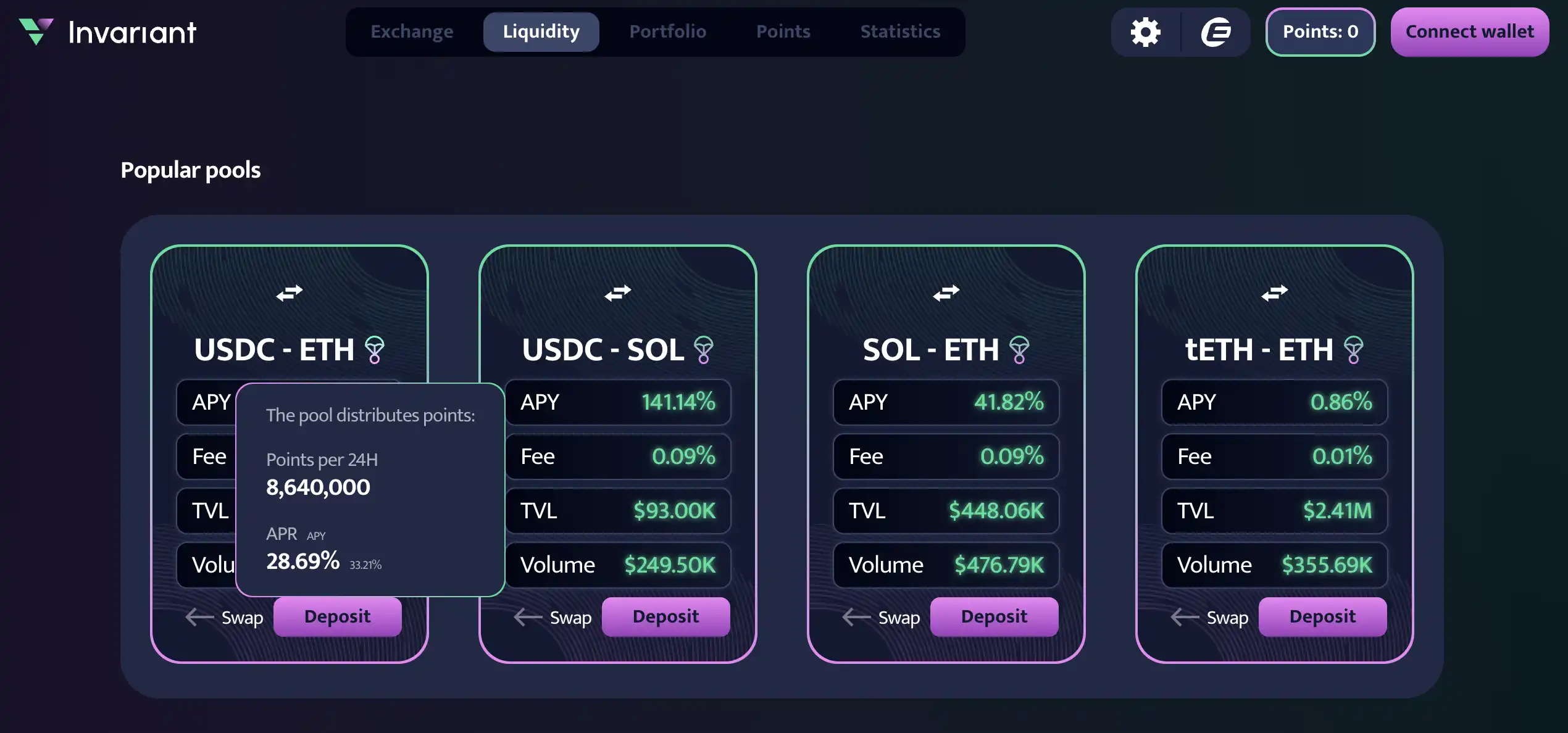 Invariant هو بروتوكول Dex الأصلي في نظام Eclipse البيئي، أثناء التفاعل، يمكن أن تحصل بعض برك السيولة على توقعات توزيع الجوائز من أنشطة نقاط المنصة في نفس الوقت.