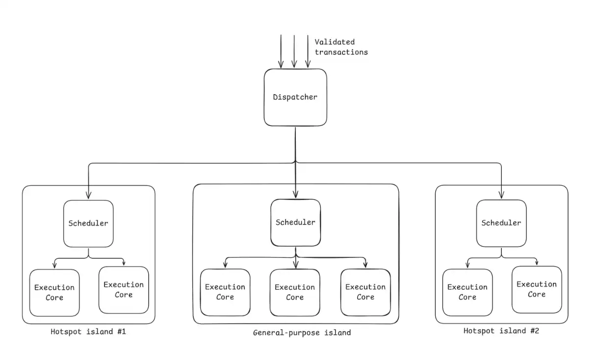 «تصميم متزامن للبرمجيات والأجهزة» يتيح للسيارات تثبيت محرك ذكي «GPU/FPGA» و نظام الملاحة الآلية «SmartNICs»، حيث يتم ضبط السرعة تلقائيًا وفقًا لحالة الطريق، وعندما تمر شاحنة «صفقات العقود المعقدة» سيتم فتح ممر خاص وتوفير تسريع قدرة الحوسبة، بينما «صفقات العقود البسيطة» تحتاج فقط استخدام الممر السريع العام. أما «التوسع الديناميكي والعزل عن النقاط الساخنة» فيعمل على زيادة عدد ممرات الطريق السريع مباشرة خلال فترات الذروة من خلال تخصيص ديناميكي لوحدات المعالجة المركزية، وإذا كان هناك مشروع ساخن يمكن عزل هذه المنطقة من المرور لتوفير الموارد دون التأثير على تشغيل السلسلة بأكملها. بينما «تحسين الطبقات المتعددة» يعمل على تبادل البيانات بين محطات الوقود ومحطات الصيانة بشكل فوري. من خلال استباق بيانات المعاملات لإبلاغ «محطة الوقود» بالاستعداد مسبقًا لتوفير الغاز، وباستخدام الذكاء الاصطناعي «تعزيز الجدولة»، يمكن توقع مسبقًا الأجزاء التي قد تتعرض للازدحام أو التلف. بينما «الحسابات خارج السلسلة + الإثباتات على السلسلة» يمكن أن يتولى حسابات معقدة خارج السلسلة، حيث يقوم «الطريق السريع لإيثريوم» بتمرير المركبات عبر التحقق من لوحة الأرقام «إثبات ZK».