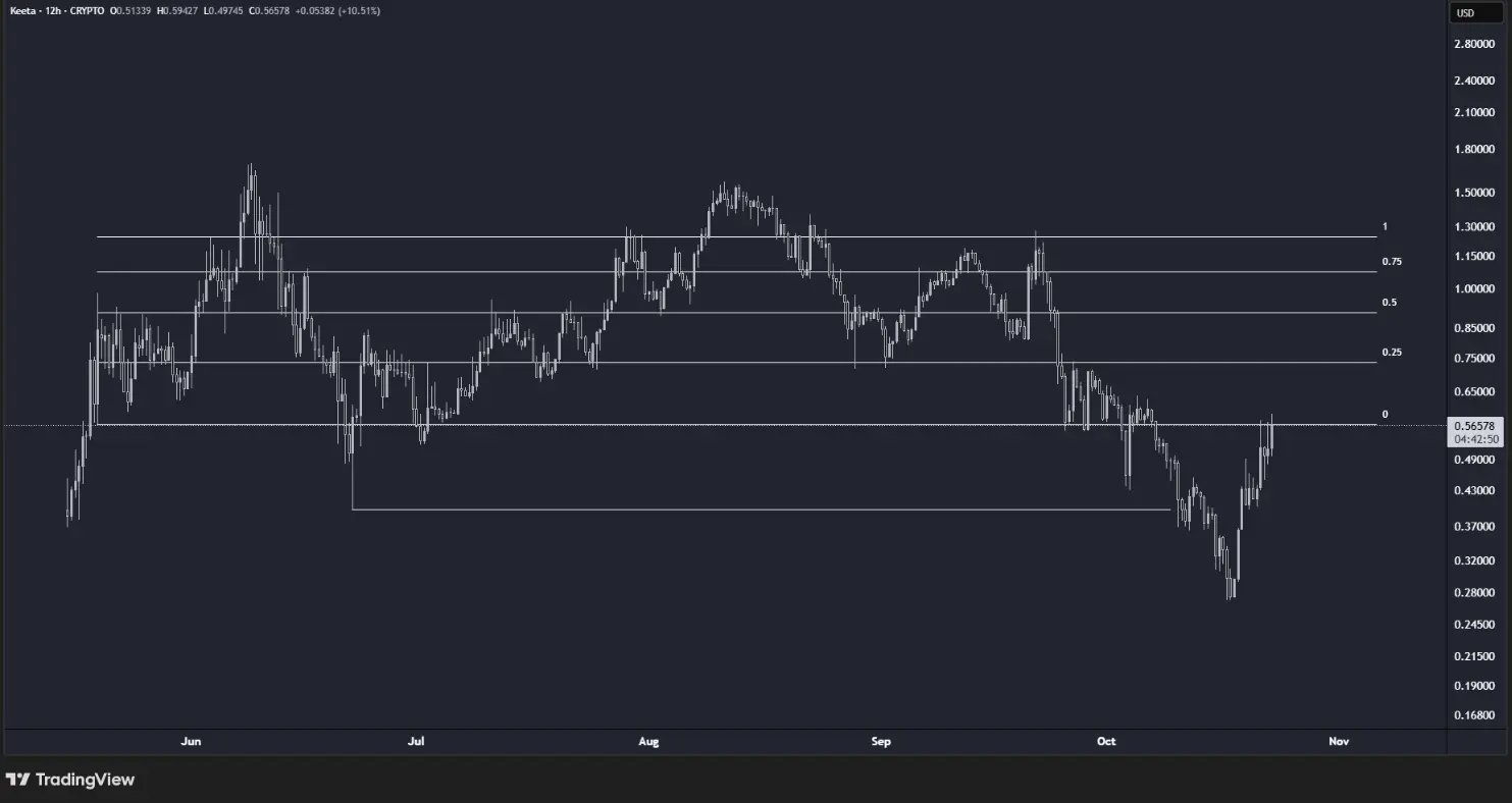 Sur le cadre temporel de 12 heures, Keeta (KTA) montre des signes de reprise nette après avoir atteint un creux autour de 0,24 USD ces derniers jours.