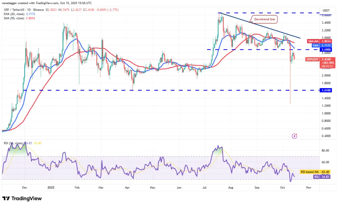 Pemulihan XRP (2,41 USD) telah terhenti di dekat zona breakout 2,69 USD pada hari Senin, menunjukkan bahwa pihak bearish menjual setiap kali harga naik.