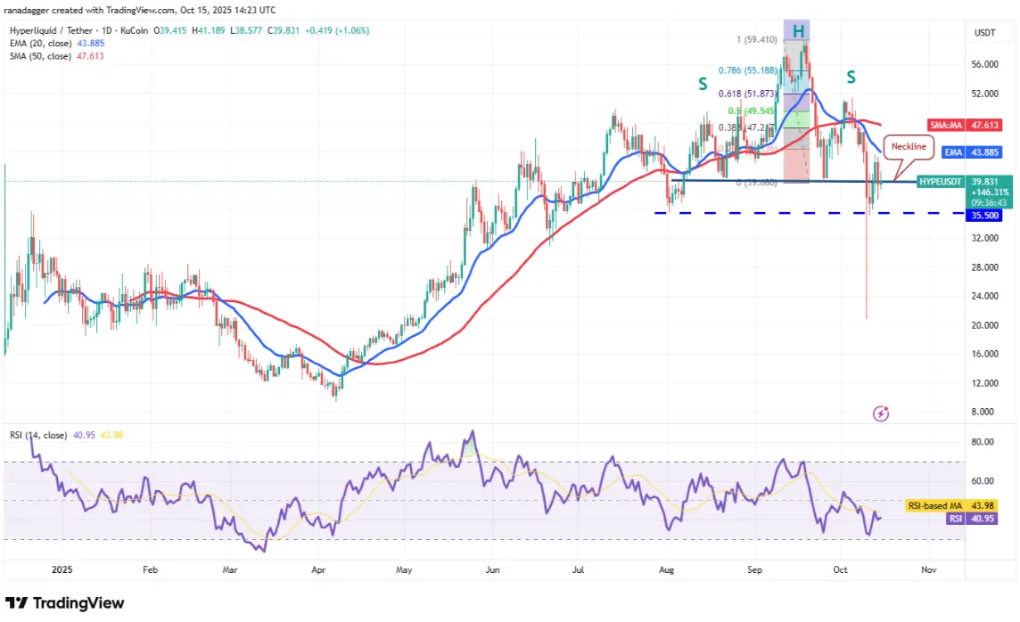 Hyperliquid (HYPE) berbalik turun dari jalur EMA 20 hari di 43,88 USD pada hari Selasa, menunjukkan bahwa setiap pemulihan sedang dijual.