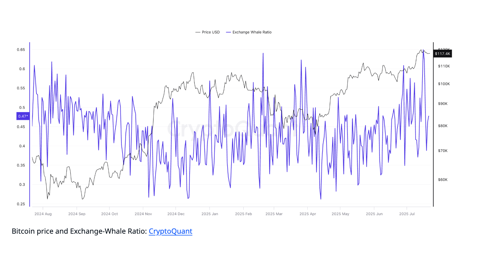 しかし、ビットコインが$122,086を突破し、その水準に再び定着できれば、特にSOPRが冷却し、クジラの取引所への比率が低下している場合、市場は再び上昇の勢いを取り戻し、価格をさらに押し上げる可能性があります。