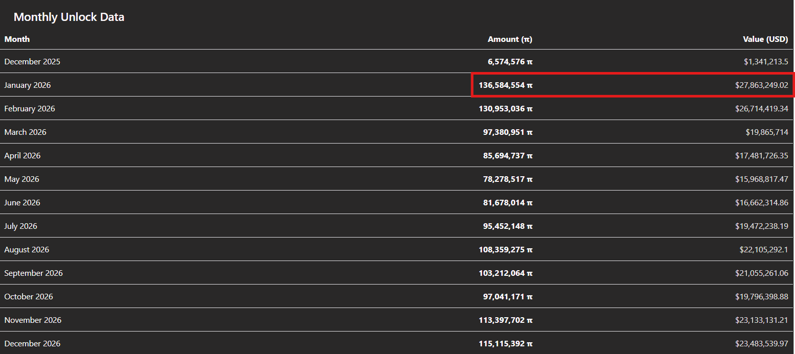2026年の最大$PI トークン解除は1月にやってくる