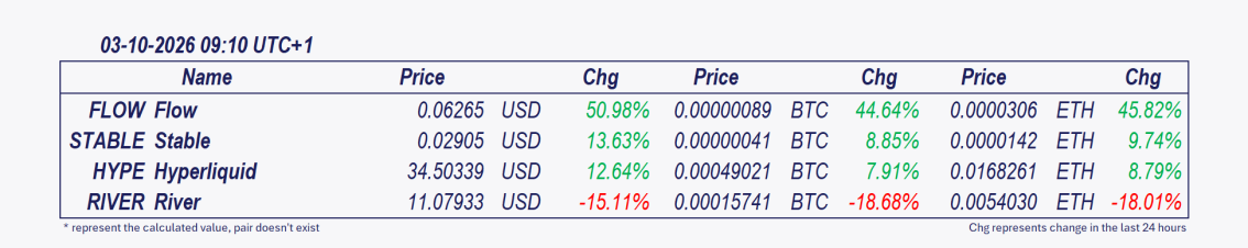 このアップデートは、午前9時(CET)までの過去24時間の市場活動をカバーしています。トップ・ムーバーは24時間のパフォーマンスを示しますが、主な焦点は深夜以降の最も大きな変動を示す資産にあります。2100NEWS指数は00:00から9:00 CETまでの変化を示します。**2100NEWS総合指数(NWST1100)**とビットコイン&イーサリアムのセクションは、報告時間に関係なく常に24時間の完全な変動を反映します。公開以降に状況が変わっている可能性があることに注意してください。ビットコインとイーサリアムのパフォーマンス分類(重要、わずか、または類似)は、過去のボラティリティの統計分析に基づいています。補足ノートでは、これらの特定の暗号通貨や指数をハイライトする基準について詳述しています—次回の更新は14:00 CETです。