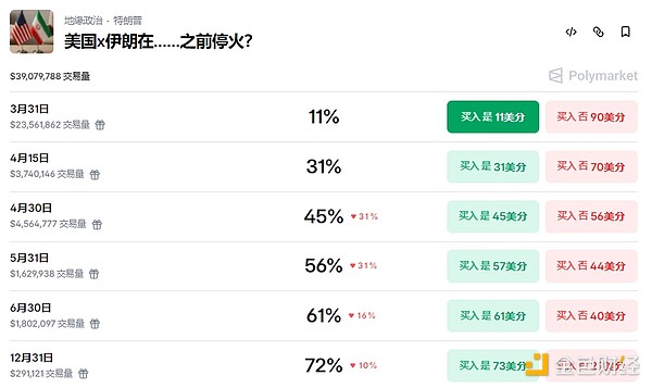 現在、このアカウントは、3月31日までに米イランが停戦すると8,005ドル、4月15日までに停戦すると15,614ドルを賭けており、これらの賭けの価値は30,000ドルを超えている。