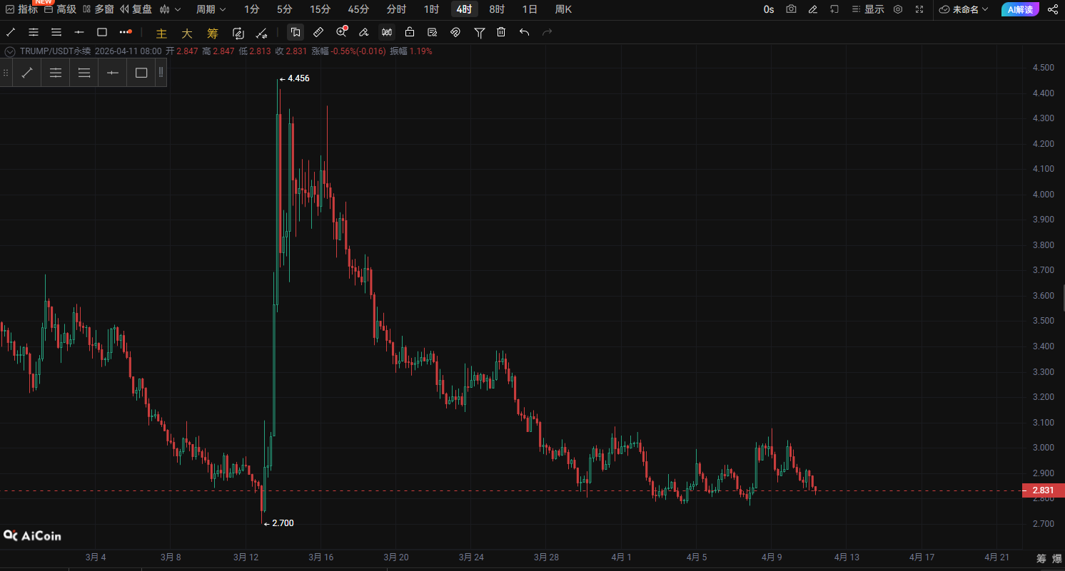 TRUMPコインの重要な転換点が出現!2.8ドルが買いと売りの分水嶺、4月11日に方向性の選択を迎える可能性