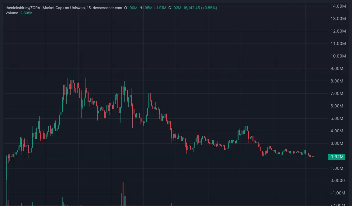 Source: CryptoNewsNet Original Title: ZORA Drops as Creator Coins Disappoint Yet Again Original Link: It’s been a volatile 48 hours for Base ecosystem supporters, with spirits reaching rejuvenated highs after the viral video journalist, Nick Shirley, released a creator token on Base via Zora, only for it to crumble less than two days later, with the token dropping by 80%.