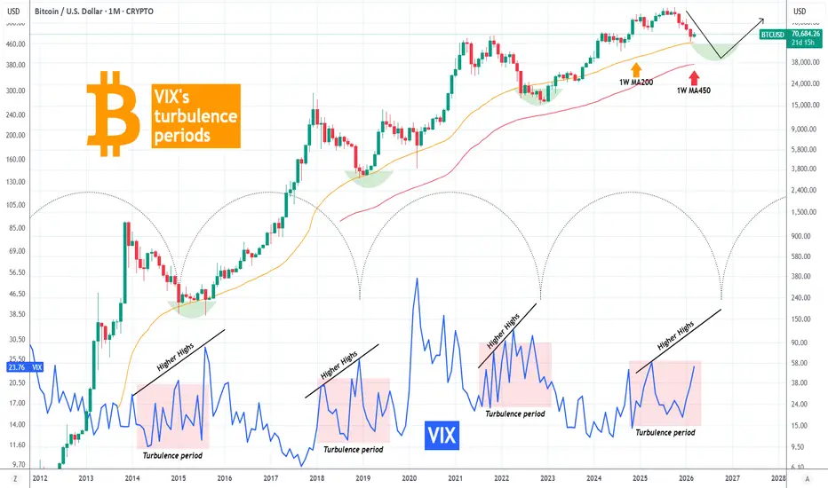 BITCOIN started its trademark Turbulence Period based on VIX.
