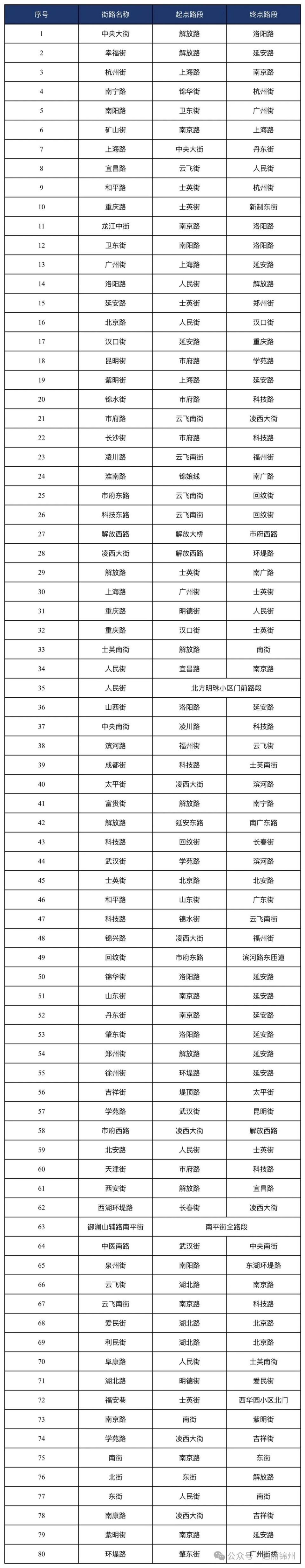 Details of 80 Strictly Managed Road Sections for Illegal Parking Violations