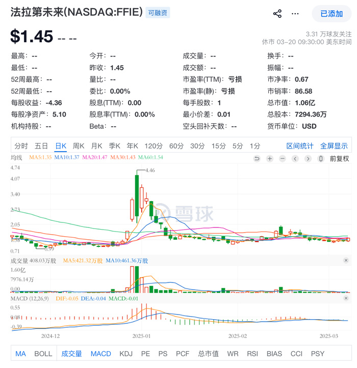 Jia Yueting admitted in the open letter that due to unresolved external investigations, interference from short-selling institutions, and internal operational shortcomings, FF’s stock price has fallen sharply from $3.60 when he took over as co-CEO last year to below $0.30 today. In this context, FF received a notice from Nasdaq on March 20 regarding a 180-day remediation period. According to regulations, companies at risk of delisting typically need to maintain a stock price above $1 for 30 consecutive trading days.