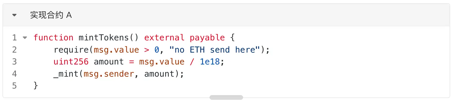 1.Na rede de testes Ethereum Sepolia, o projeto (EOA) implantou um contrato de implementação, suponha que esse contrato tenha como função principal aceitar ETH dos usuários para cunhar tokens AToken, com um código semelhante à função mintTokens. O endereço de implantação é A. É importante notar que, em A, não há uma função que permita extrair ETH diretamente.
