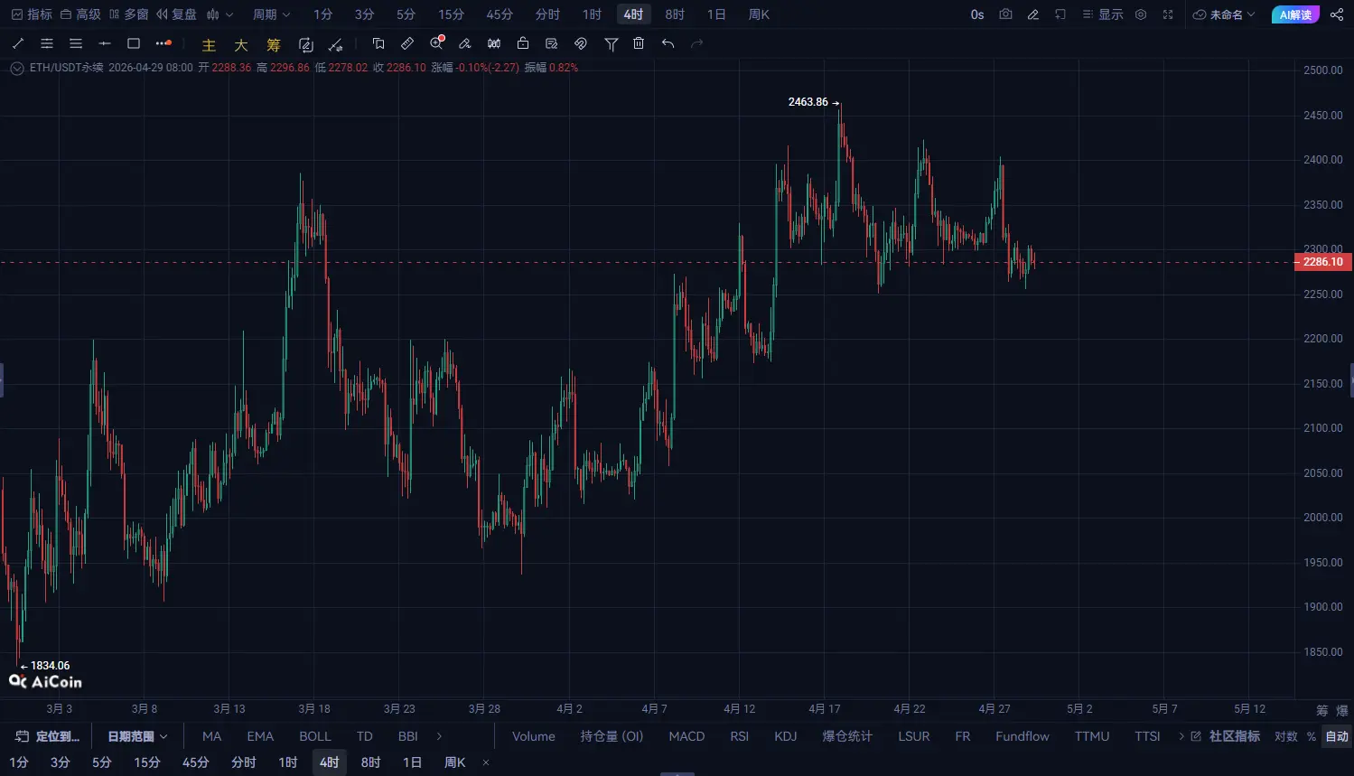 ETH em alta confirmada! A resistência acima de 2280 é evidente, uma estrutura de recuo de curto prazo está se formando