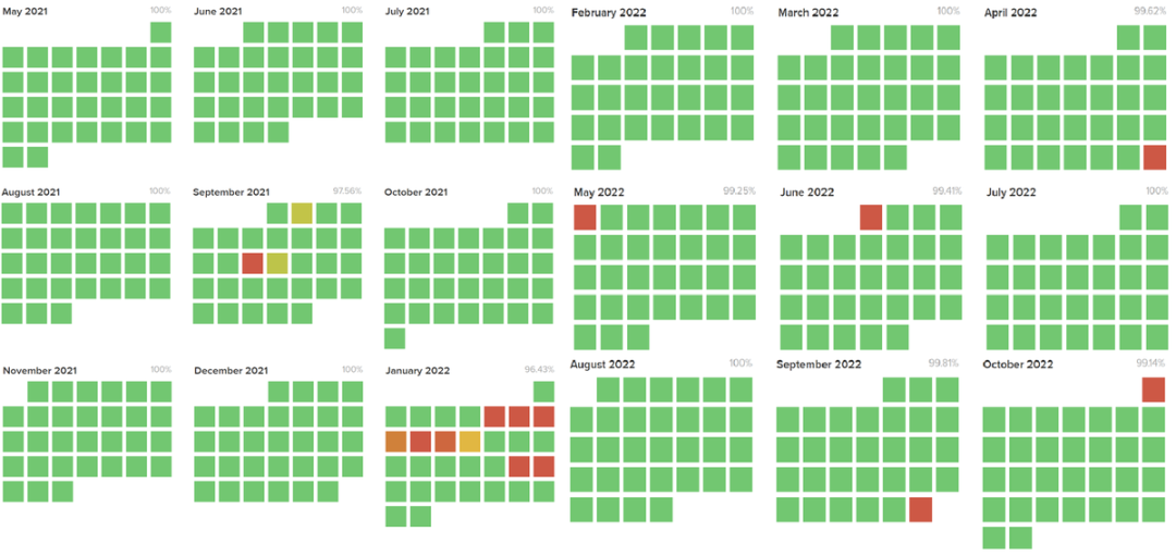 Vamos dar uma olhada mais de perto nas falhas passadas e suas causas profundas, e os gráficos de tempo de atividade para 2021 e 2022 são muito ruins: