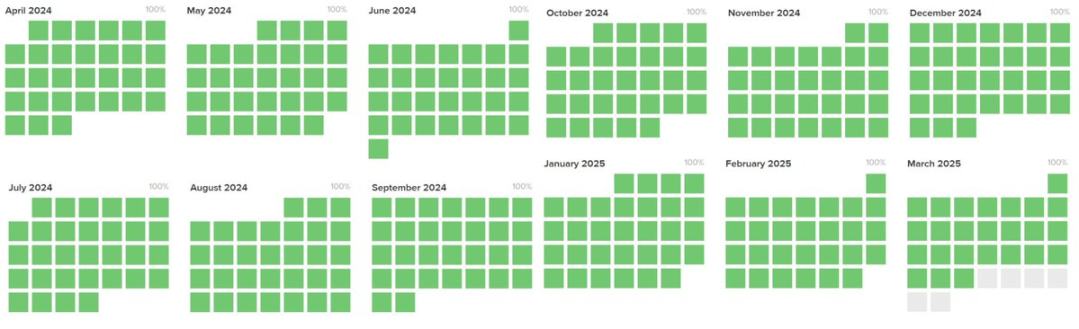O ano seguinte foi uma melhoria significativa em relação ao ano anterior, não perfeito, mas impressionante. A maioria dessas falhas está relacionada à falta de um mercado de taxas bem desenvolvido. A implementação do mercado de taxas durante este período foi uma das principais razões pelas quais mudei para Solana, pois abriu caminho para uma estabilidade perfeita no ano seguinte: