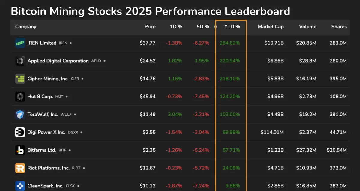 Desempenho das ações de mineração de Bitcoin em 2025: Uma preferência clara do mercado
