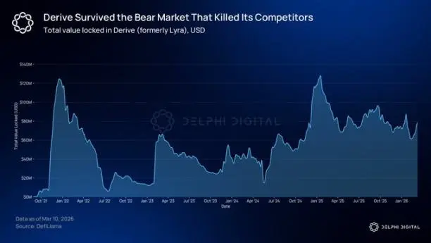 @DeriveXYZ continua sendo a principal plataforma de opções na blockchain, com um volume nominal de negociações superior a 700 milhões de dólares nos últimos 30 dias. Essa plataforma foi lançada em agosto de 2021 sob o nome Lyra, como um Automated Market Maker (AMM) de opções, e após um mercado em baixa, foi completamente reconstruída em 2023, agora baseada na sua própria camada Layer 2, OP Stack, com livro de ordens centralizado e sem taxas de gás.