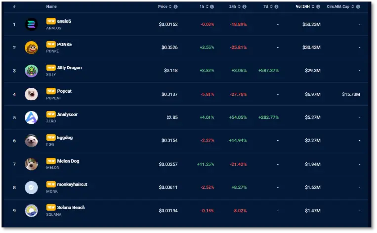 Видно, что хотя монеты Meme популярны, капитальная деятельность в цепочке Solana сосредоточена не только на Meme. И все старые игроки в сфере финансов Web3 знают, что Meme достаточно популярен, но продлится он недолго.
