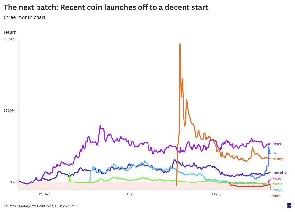 Итак, вот немного “глазной воды”: Из крупных запусков монет за последние несколько месяцев HYPE — связанный с проектом Hyperliquid — показывает лучшие результаты с устойчивым ценовым действием