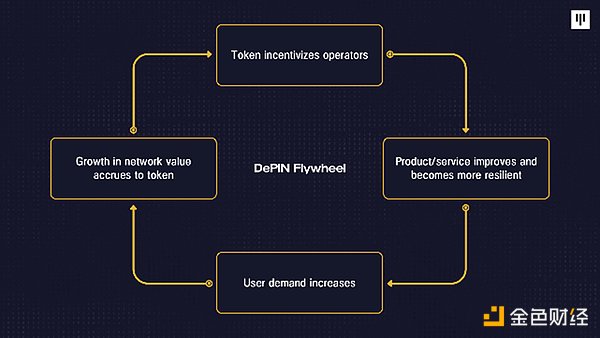 Лучшие продукты и услуги - мощное ДеPIN летающее колесо может создать продукты лучше, чем их централизованные конкуренты. С ростом спроса пользователей рост захватывается токеном с мощным накоплением ценности. Эти токены, в свою очередь, стимулируют больше операторов вносить вклад, дальше совершенствовать продукты и привлекать больше пользователей. Это и есть ДеPIN летающее колесо.