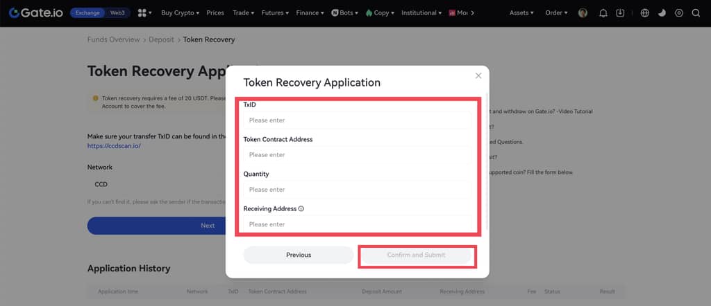 Kullanıcı deneyimini iyileştirmek için Gate yeni bir özellik başlattı - yanlış yatırılan fonların geri alınması. Yanlışlıkla bir madeni para yatırdıysanız, paranızı geri almak için yeniden başvuruda bulunabilirsiniz. Bu özellik şu an için yalnızca web'de kullanılabilir.
