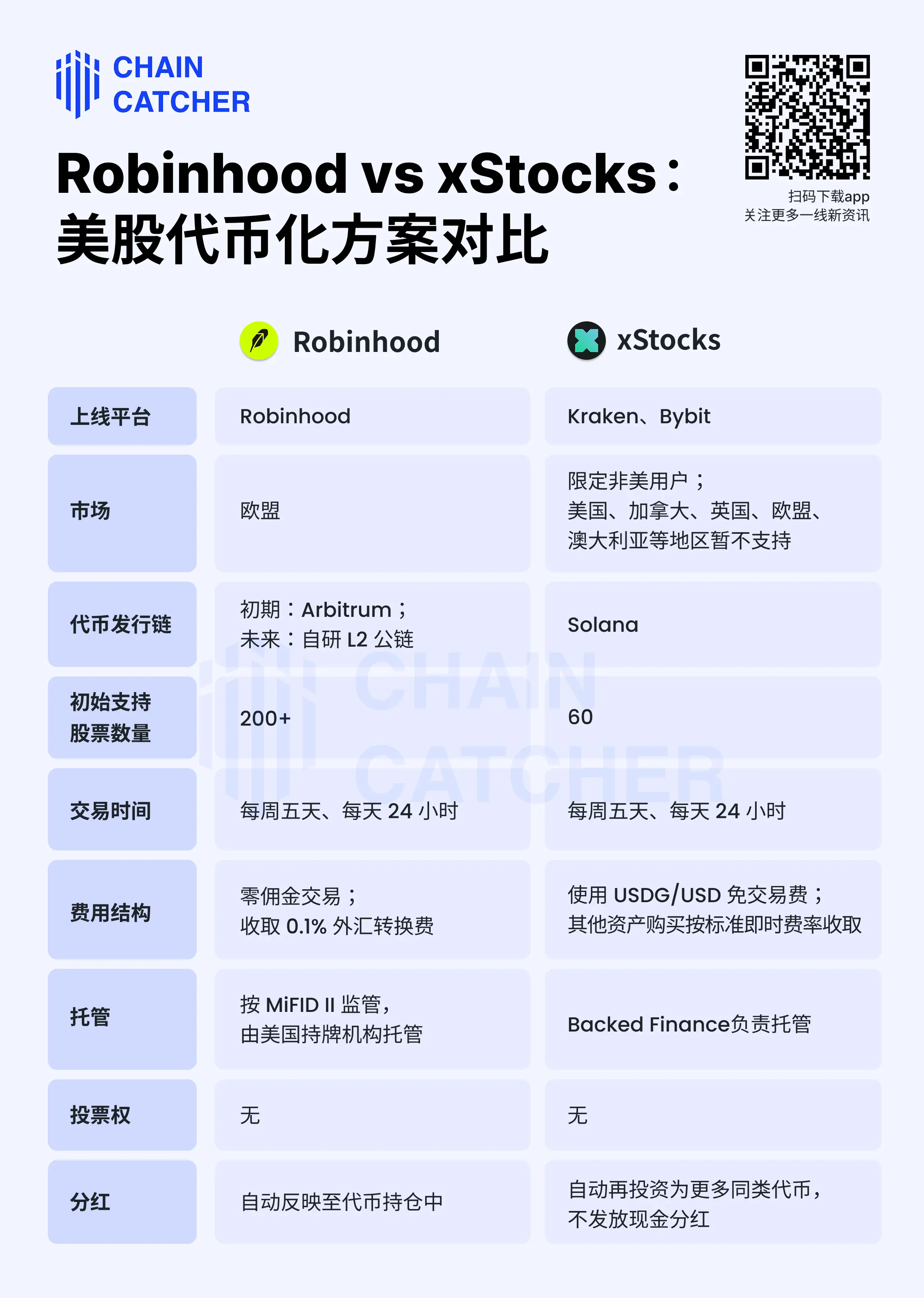 In terms of technology and market strategy, these two forces display distinct differences. Robinhood has chosen Arbitrum as the token issuance chain and is the first to support the European market. In contrast, Kraken’s xStocks is based on the Solana chain, targeting non-U.S. retail customers, and currently does not cover several major markets, including the European Union.