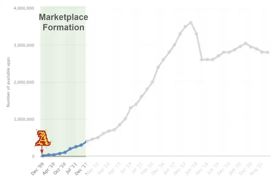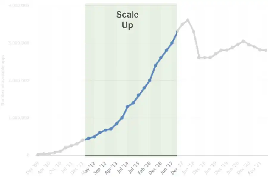 At this stage, it is most important to have viral applications that stand out - those that serve as catalysts for user adoption. Google Play went through this process, with early hits like ‘Angry Birds’ helping ignite its expansion phase.
