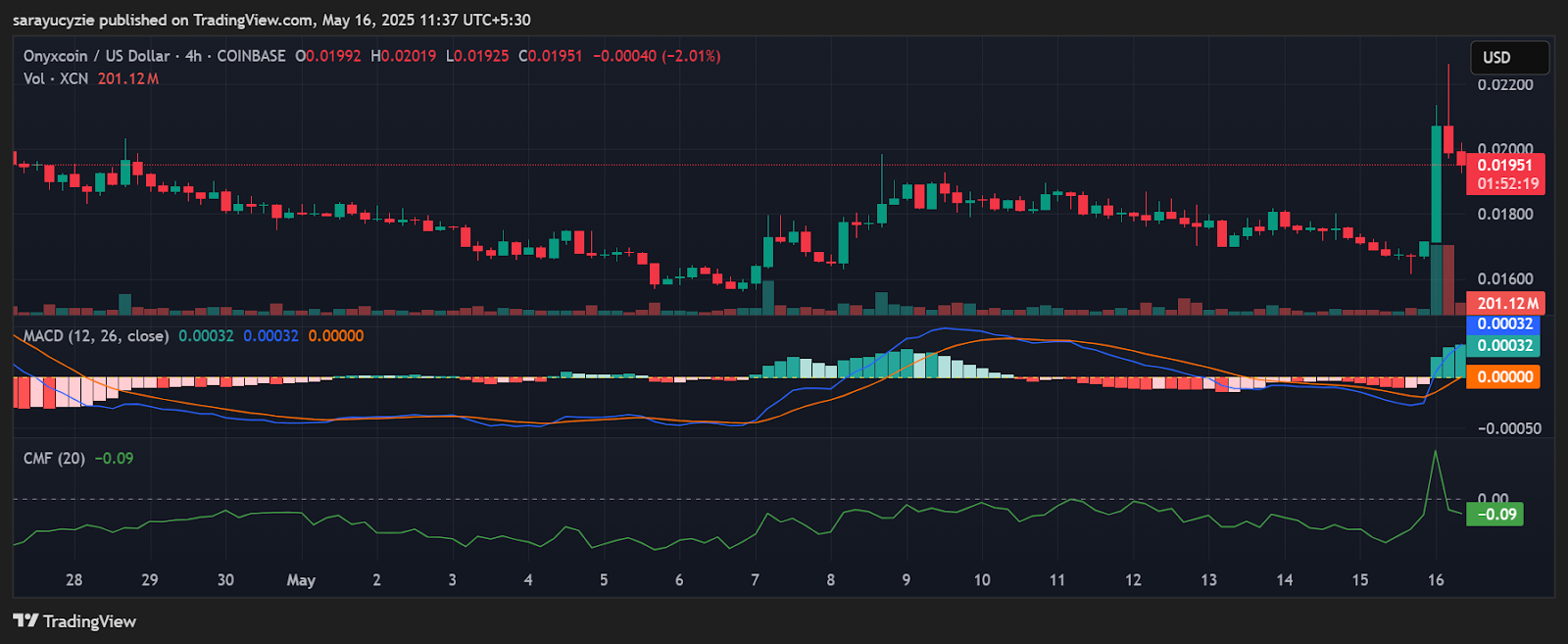 Зокрема, Onyxcoin (XCN) продемонстрував значний приріст більш ніж 13,27% за останні 24 години. У ранні години актив торгувався на нижньому рівні $0,0162, і бульбашковий зсув спричинив підйом активу до піку $0,02258, подолавши опір між $0,017 і $0,021.