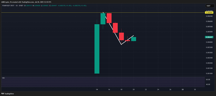 PUMP після запуску відразу ж розігрівається, що призводить до появи ряду зелених свічок, зростаючи більше ніж на 26%, досягаючи 0.006 доларів.
