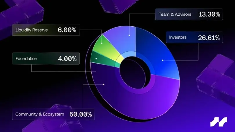 Розподіл команди та консультантів становить 13,3%, передбачений 12-місячний термін блокування та наступні 30 місяців лінійного вивільнення. Розподіл інвесторів становить 26,61%, з тим самим довгостроковим графіком вивільнення для забезпечення стабільності екосистеми. Фонд резервує 4% як стратегічні кошти, 6% для ліквідності, зарезервованої для маркетингу на біржі та співпраці з маркет-мейкерами.