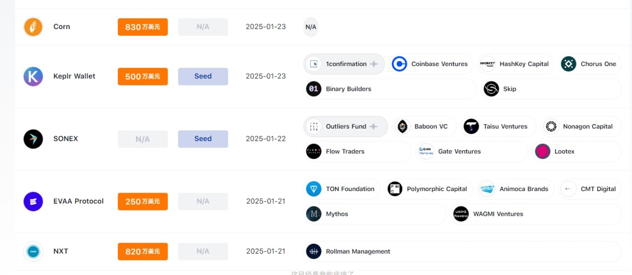 За даними Foresight News, з 18 січня 2025 року по 24 січня 2025 року на ринку шифрування відбулося 11 подій з приватного та інвестиційного фінансування, з них 2 у сфері інструментів та інфраструктури, 4 у сфері Децентралізованих фінансів, 3 у сфері управління активами, 1 у сфері ланцюгових ігор та Невзаємозамінних токенів та 1 у сфері Web3. Загальна сума розголошених інвестицій становить приблизно 0.48 мільярда доларів США.