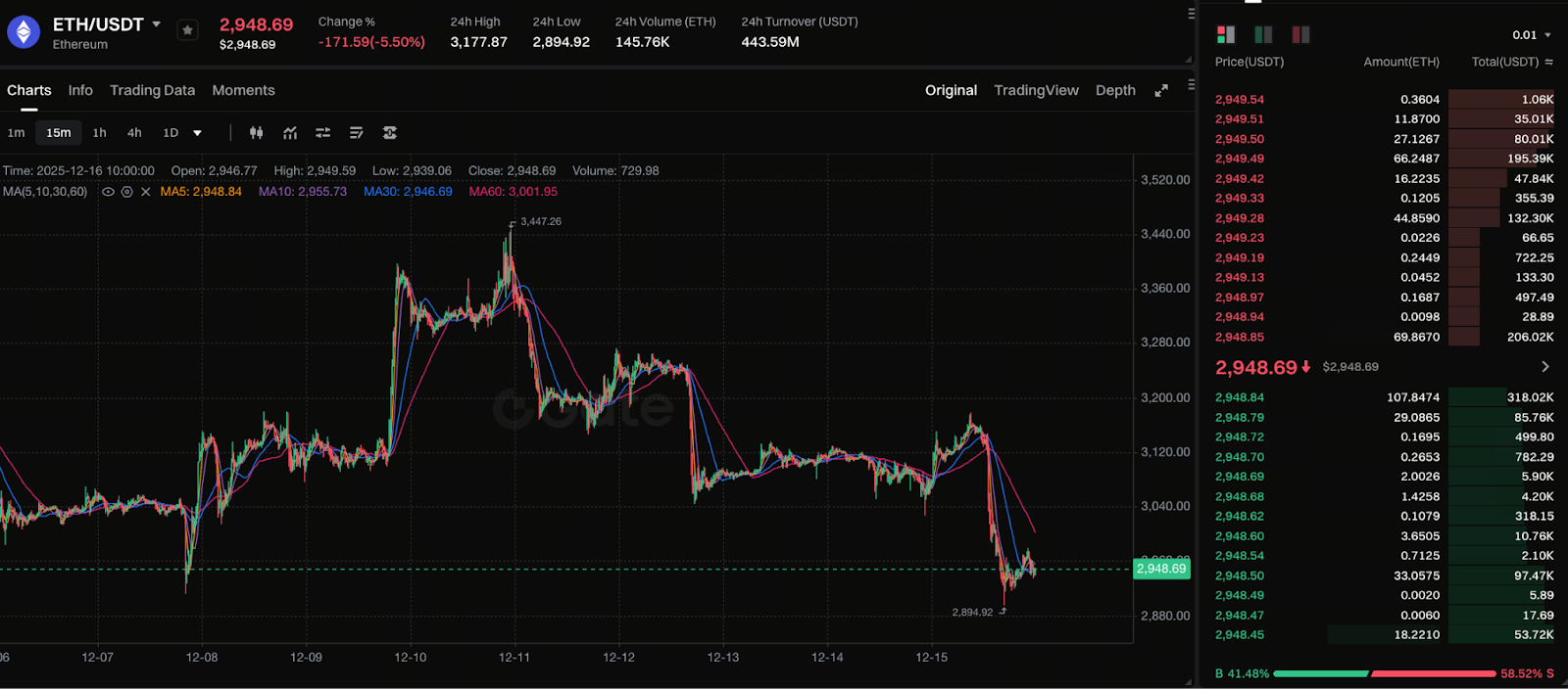 Đến cuối năm 2025, giá ETH vẫn dao động quanh mức 3.000 USD, trong bối cảnh tâm lý thị trường còn nhiều bất ổn. Các chỉ báo kỹ thuật cho thấy khả năng cao ETH sẽ tiếp tục đi ngang hoặc điều chỉnh trong ngắn hạn.