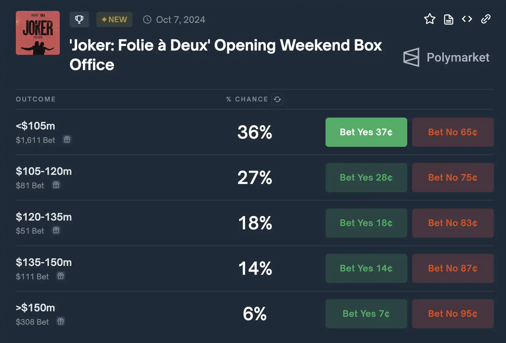 2.《小丑:雙人舞曲》首映週末票房
