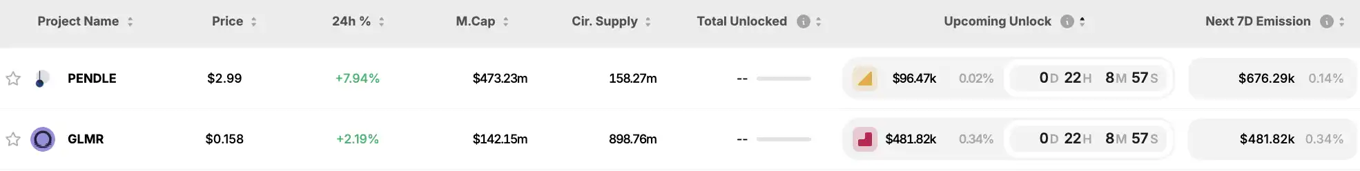 代幣解鎖