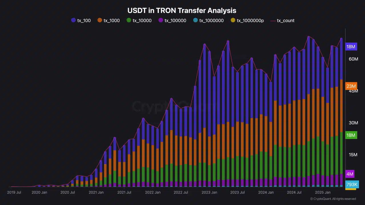 来源:CryptoQuant## TRON – 散户和机构投资者的双重支付渠道