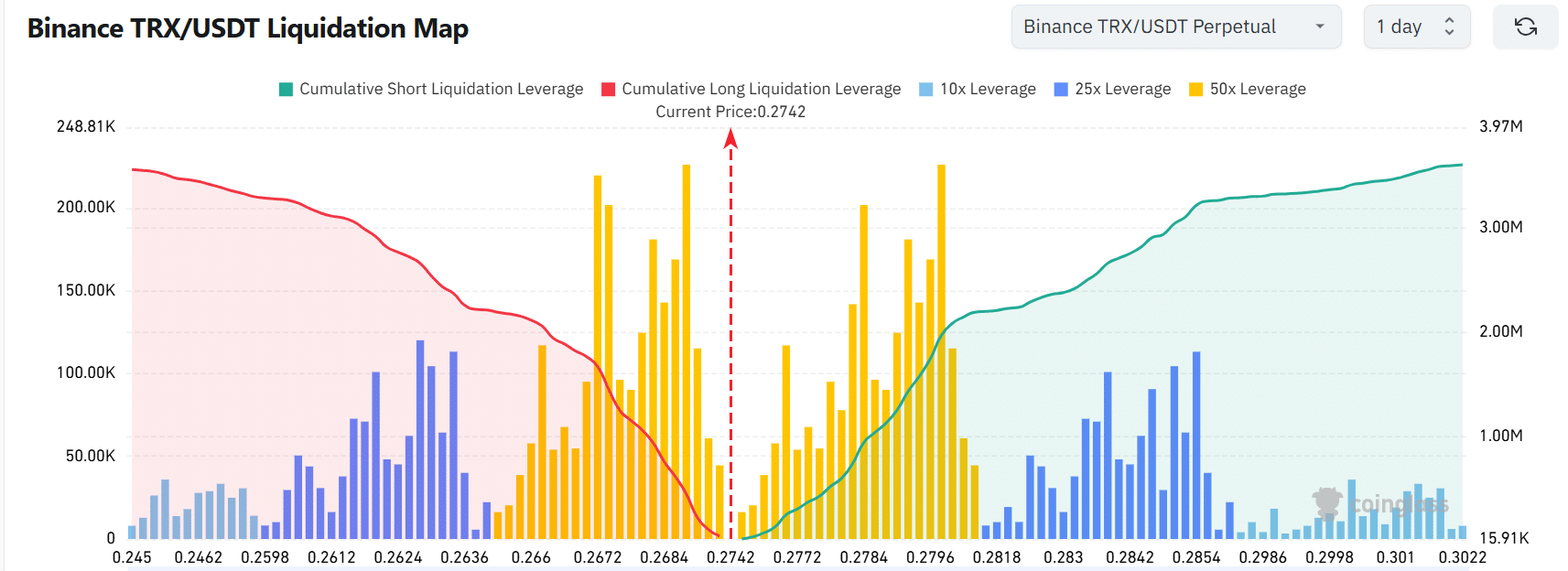 正集中在$0.275–$0.285的区域。如果价格成功突破$0.28的水平,这可能会触发广泛的空头挤压效应。