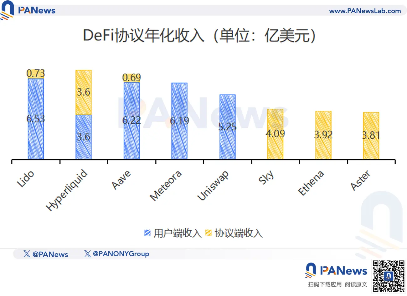 与此同时,头部协议的盈利能力却在飙升,前十大协议年收入从25.1亿美元翻倍至50.2亿美元。DeFi市场的资金,正日益向少数几个核心组件集中。