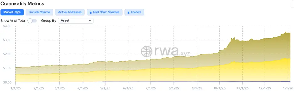 同样的情况再次出现在2025年11月。代币化金银产品在贵金属价格上涨与地缘政治动荡等宏观因素的驱动下,市值突破35亿美元,反映出资金在链上寻求安全避风港的需求和趋势。