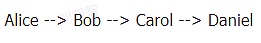 假设Alice要向Daniel付款100块,但他们之间没有建立通道。而Alice发现,可以通过Bob和Carol这两个中间人向Daniel付款。这里面要引入HTLC作为支付渠道,首先Alice向Daniel发起请求,然后Daniel发给Alice一个哈希r,但Alice不知道r对应的明文R。